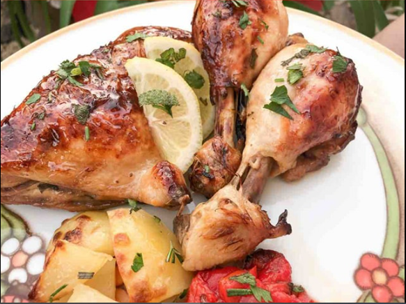інгредієнти 1 кг курки 300 г білої цибулі 250 г помідорів черрі 3 г розмарину 3 г шавлії 3 г м’яти 500 г картоплі 450 г червоного перцю 1 л білого вина (для маринування) 1 лимон Для медової глазурі: 100 г акацієвого меду 10 г гірчиці 30 г оливкової олії 15 г яблучного оцту 10 … Read more