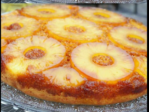 інгредієнти 1 труна Підготовка: 20 хв Приготування: 40 хв ананаси в сиропі 150 г борошна 90 г вершкового масла кімнатної температури 1 пакетик розпушувача 3 яйця 110 г цукру Карамель: Сік половинки лимона 30 мл води 100 г цукру Підготовка дивіться продовження на наступній сторінці